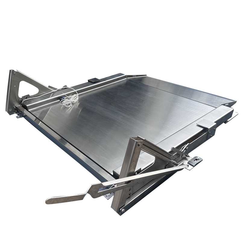 3.可掀起設計采用力學原理通過氣動彈簧實現(xiàn)自動掀起,便于沖洗秤體表面。